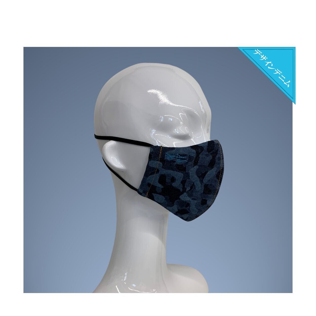 レーザー加工による繊細な色落ち加減でカモフラ柄を表現したおしゃれなデニムマスク