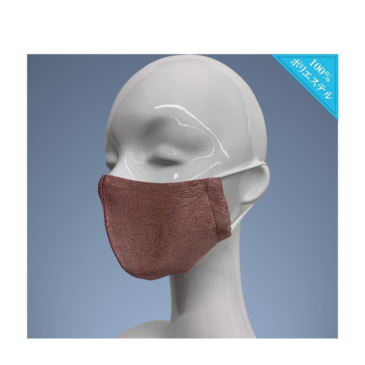 マネキン着用のマスクのひもは頭の後ろで固定させております。